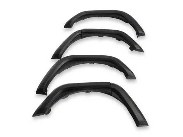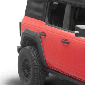 Sleek Modern Design. Give your Bronco 4-Door an instant style and functionality upgrade with the Bestop Fender Flares; Black. The fender flares are designed to provide enhanced tire coverage, which is essential for protecting your Bronco’s body from mud, rocks, and road debris, especially when running larger off-road tires Constructed with durability and style in mind, these fender flares feature a robust, impact-resistant construction, ensuring they can withstand the rigors of off-road adventures. The durable black finish not only adds a sleek, modern look to your Bronco but is also UV-resistant, preventing fading and maintaining the flares’ aesthetic appeal over time.